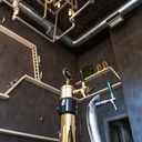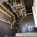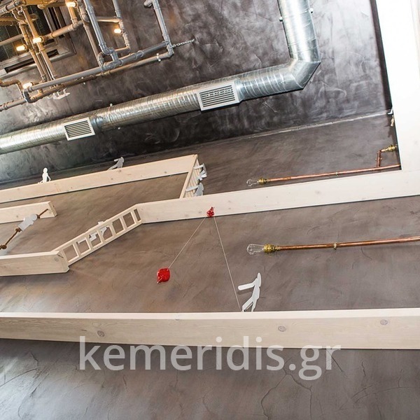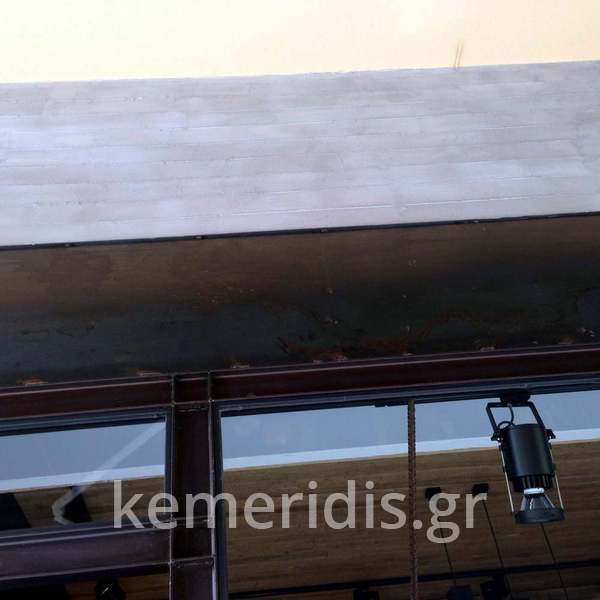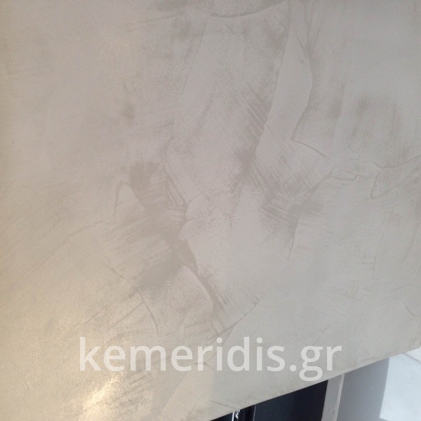 Η τσιμεντοκονία έγινε με ειδικού τύπου κονιάματα και βερνίκια ώστε να δίνει μια αίσθηση μεταλλική.