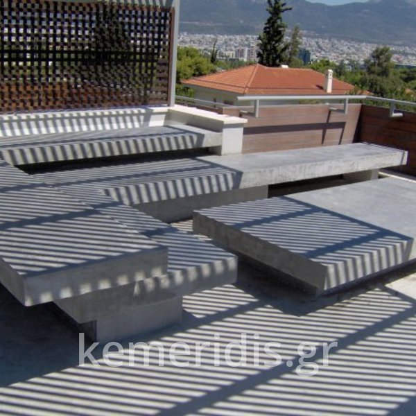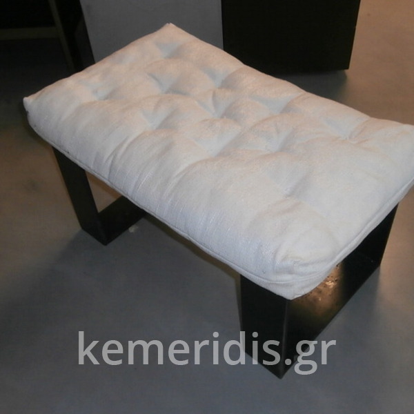 Κατασκευή καθίσματος από μπετόν σε μορφή μαξιλάρας καπιτονέ με μεταλλικά πόδια από λάμα. Κατάλληλο για εσωτερικούς και εξωτερικούς χώρους για κατοικίες και καφέ , χώρους εστίασης κλπ..