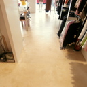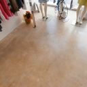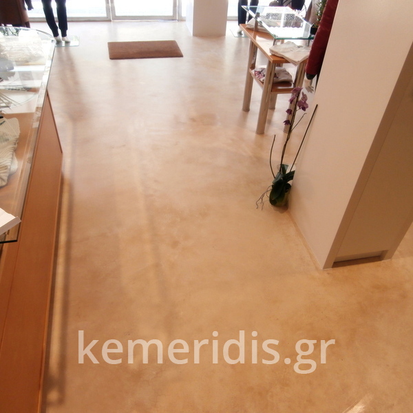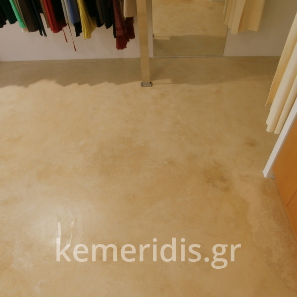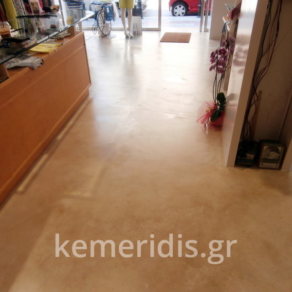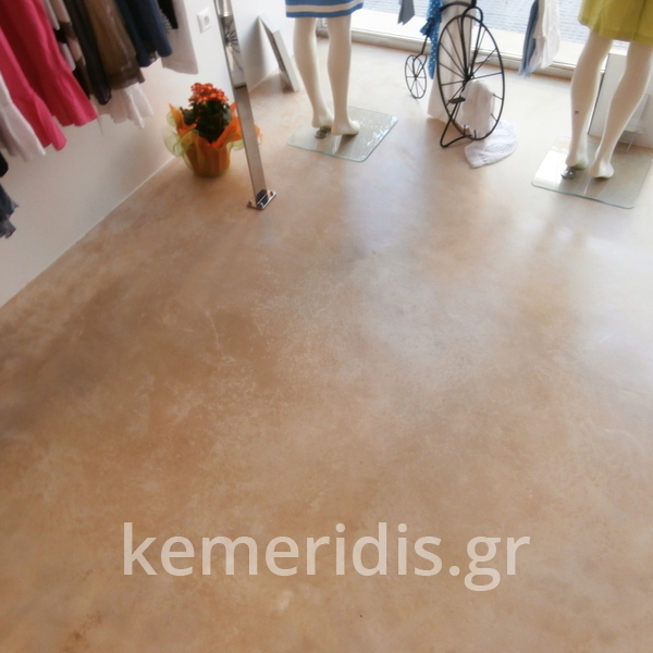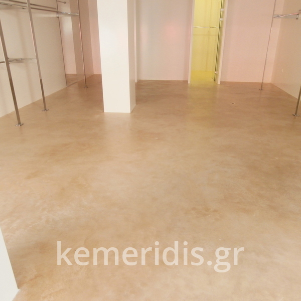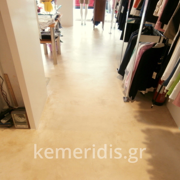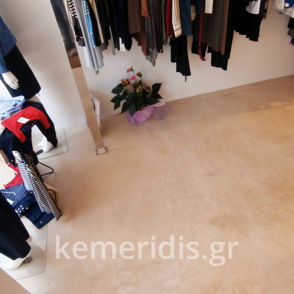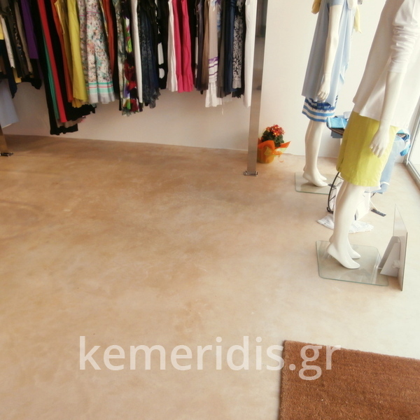 Σε κατάστημα ρούχων στον Άγιο Δημήτριο η διακοσμήτρια ήθελε ένα ενιαίο δάπεδο αλλά να μην είναι πατητή τσιμεντοκονία. επίσης επειδή το δάπεδο ήθελε γέμισμα προτείναμε να γίνει η εργασία μία και έξω με έγχρωμο μπετόν με αδρανή μωσαϊκού.