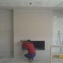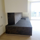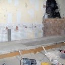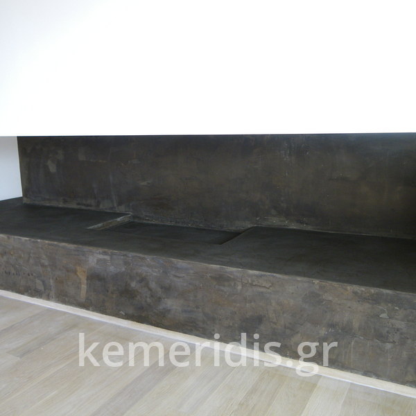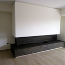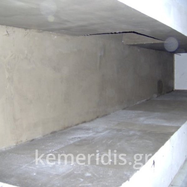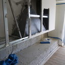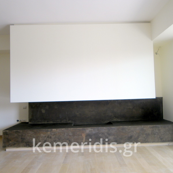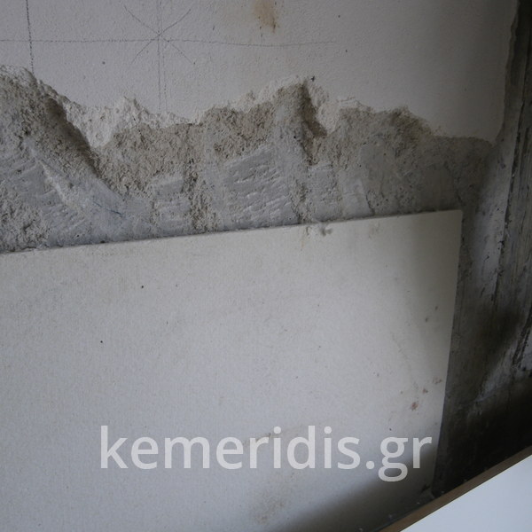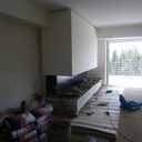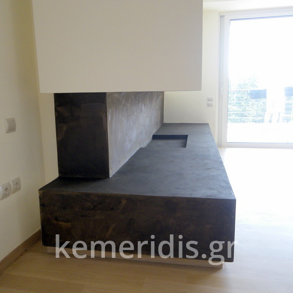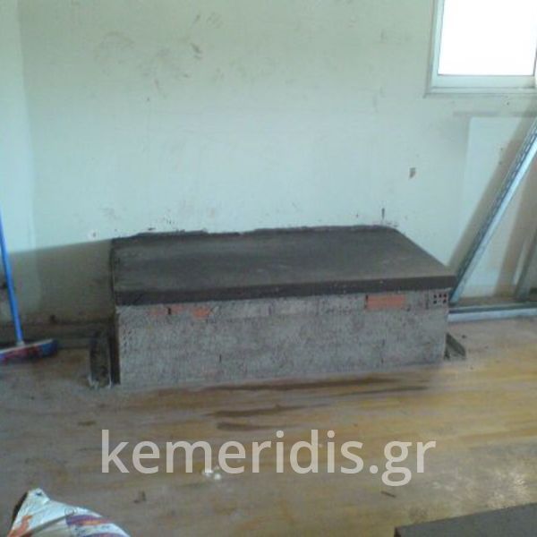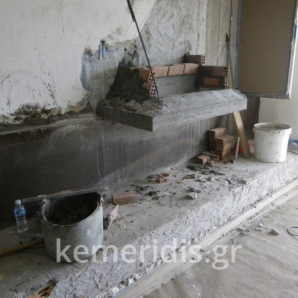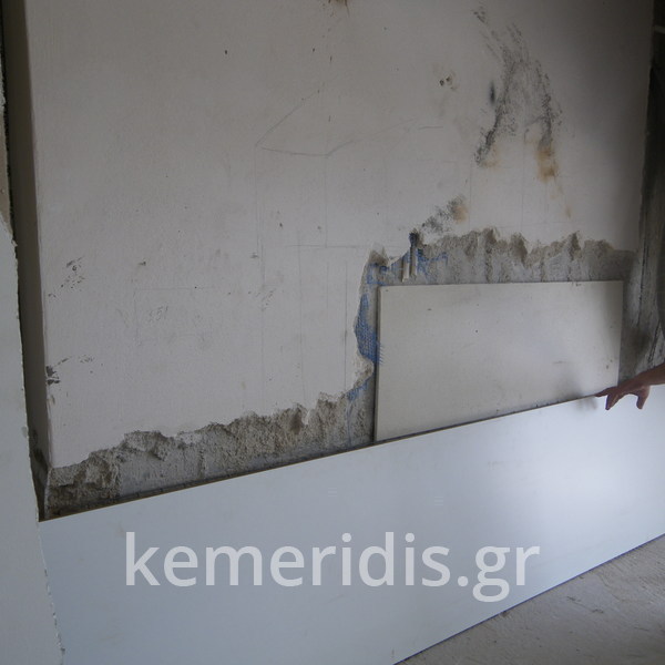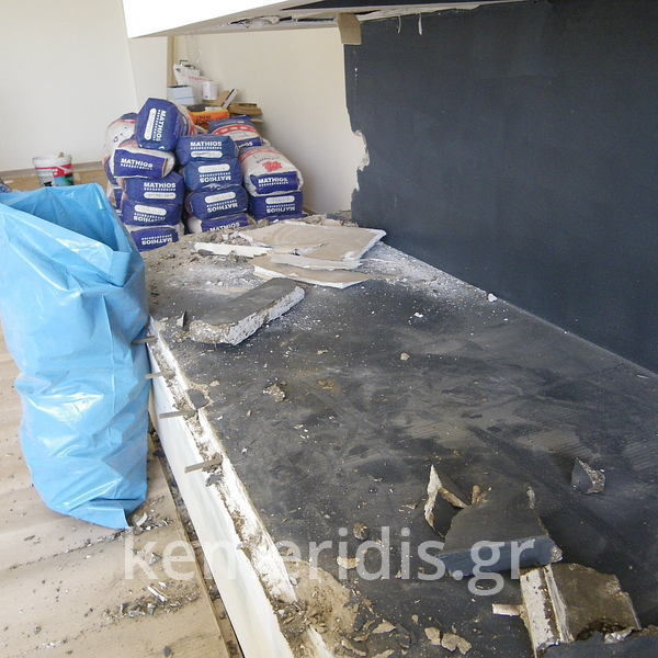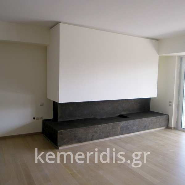 Με το πέρας τον καθαιρέσεων τοποθετήσαμε στο τοίχο ειδική θερμομονωτική πλάκα ceramic board 1000 βαθμούς C αντίσταση και κατασκευή του μπετόν από πυρίμαχο τσιμέντο και θρυμματισμένο πυρότουβλο (chamotte), κατασκευή κτιστού αεροθαλάμου με θερμομόνωση της ανοξείδωτης καμινάδας, και φούσκα από διπλή πυράντοχη γυψοσανίδα, τέλος στοκάρισμα με πυράντοχο υλικό για να δώσει μία bronze εικόνα.