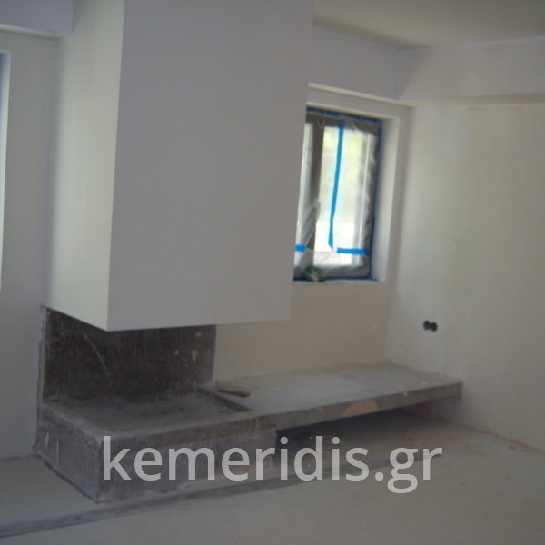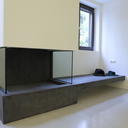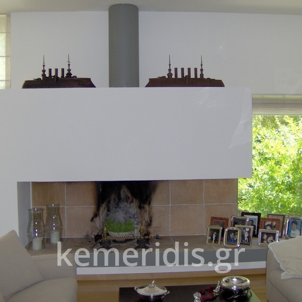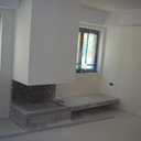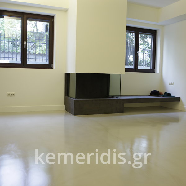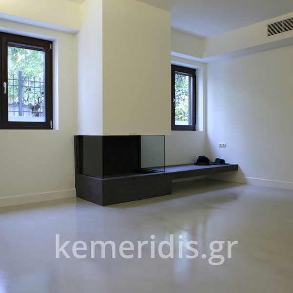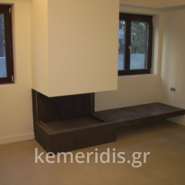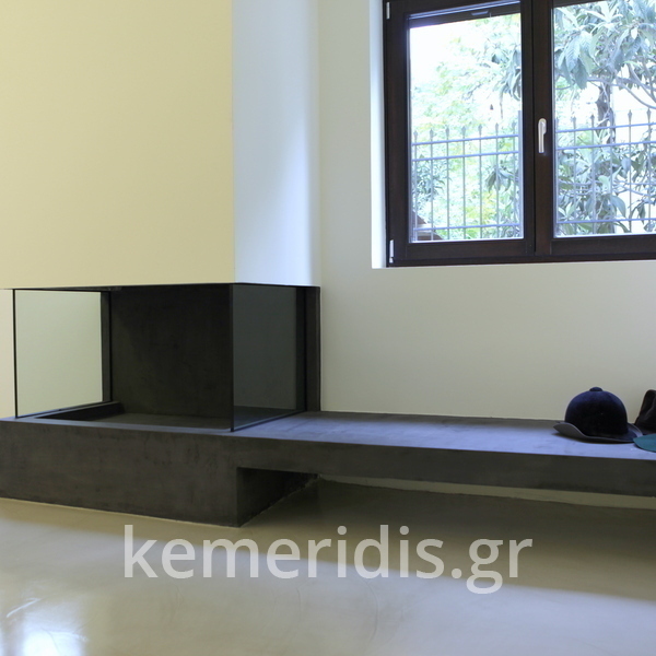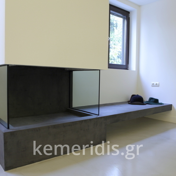 Σε κατοικία στη νέα Ερυθραία κατασκευή τζακιού από πυρίμαχο μπετόν & καθιστικού από τσιμεντοκονία στό χρώμα του τσιμέντου και πυράντοχα κρύσταλλα.