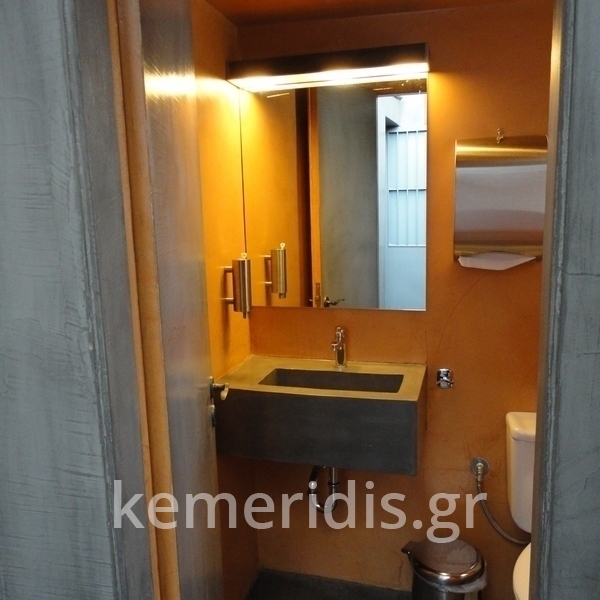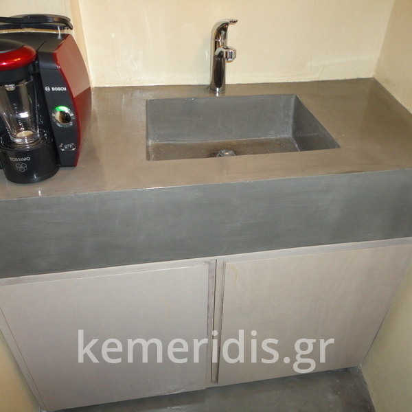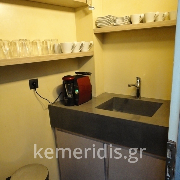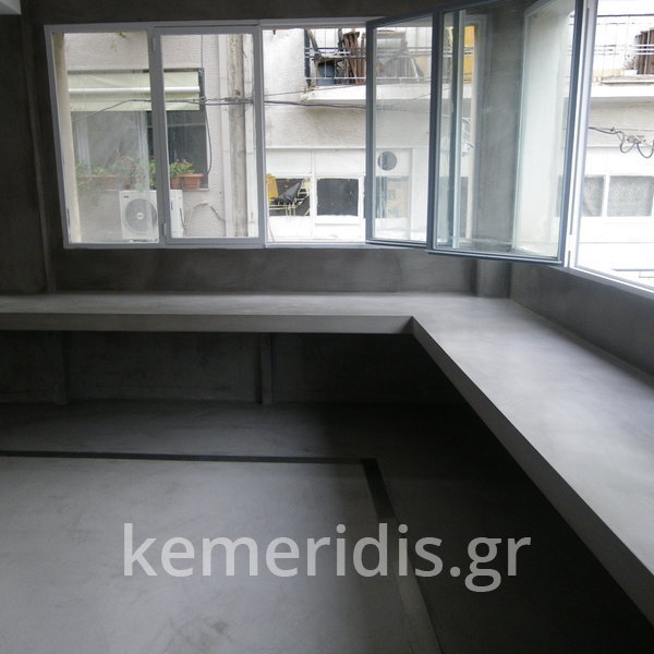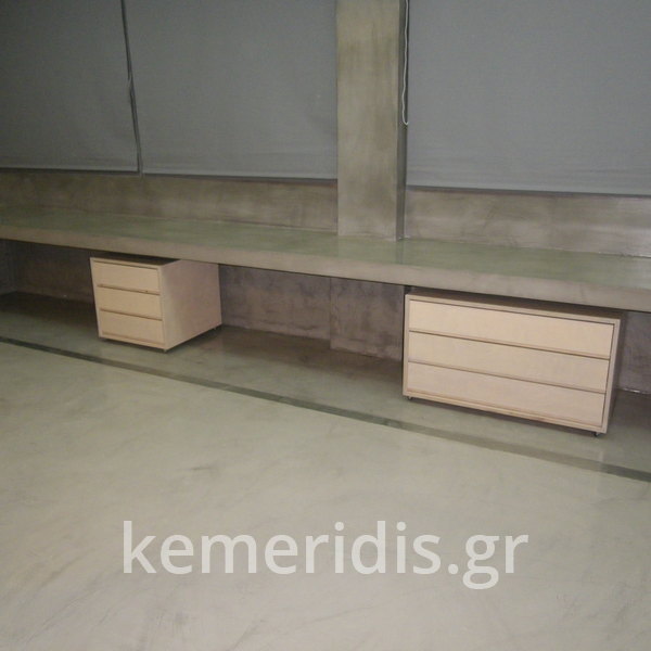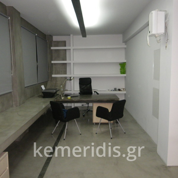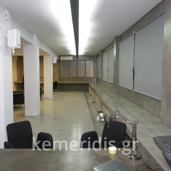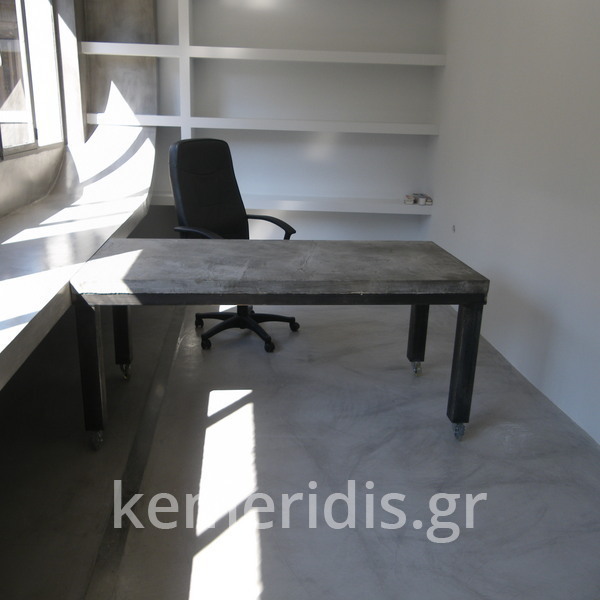 Σας περιμένουμε στο γραφείο μας που έχει τσιμεντοκονίες στα δάπεδα, στον πάγκο, στα 2 wc στο κουζινάκι, και κατασκευάσαμε γραφεία & τραπεζάκι από μέταλλο & beton cire (μπετό κυρωμένο).