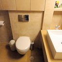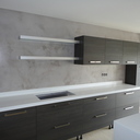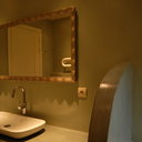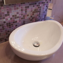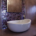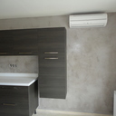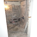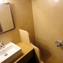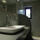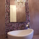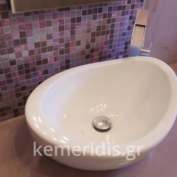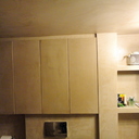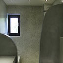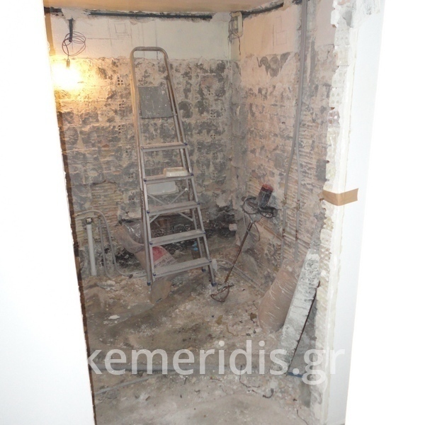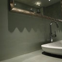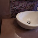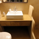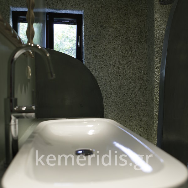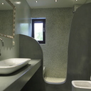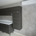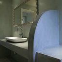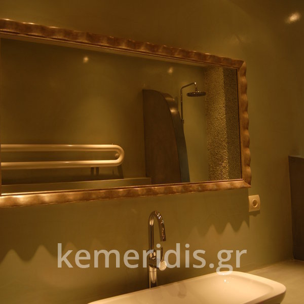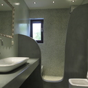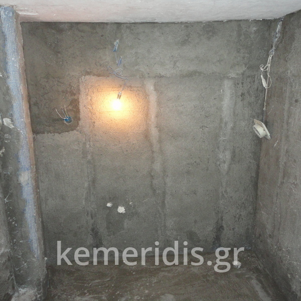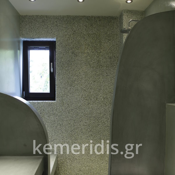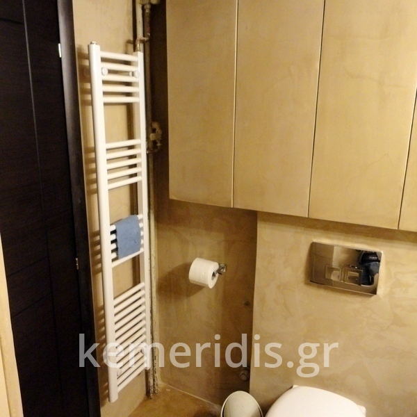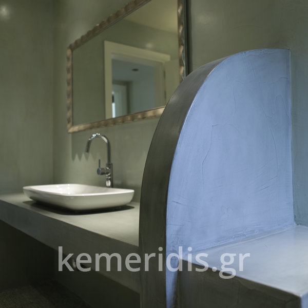Σε μπάνιο που ανακαινίσαμε πλήρως, κατασκευάσαμε πάγκο, ντουζιέρα και ντουλάπια από κοντραπλακέ θαλάσσης , κατόπιν στεγανοποιήσαμε όλες τις επιφάνειες, και τελικά τοποθετήσαμε σε όλες τις επιφάνειες πατητή τσιμεντοκονία.