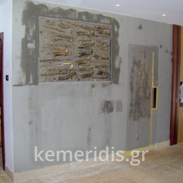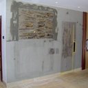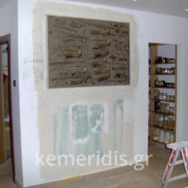 Τοποθέτηση λεπτής τσιμεντοκονίας ,γύρω από ένα επίτοιχο έργο, σε τοίχο από γυψοσανίδα & τοποθέτηση λεπτής τσιμεντοκονίας στην μία όψη της ξύλινης πόρτας ώστε να μην ξεχωρίζει από την υπόλοιπη κατασκευή.