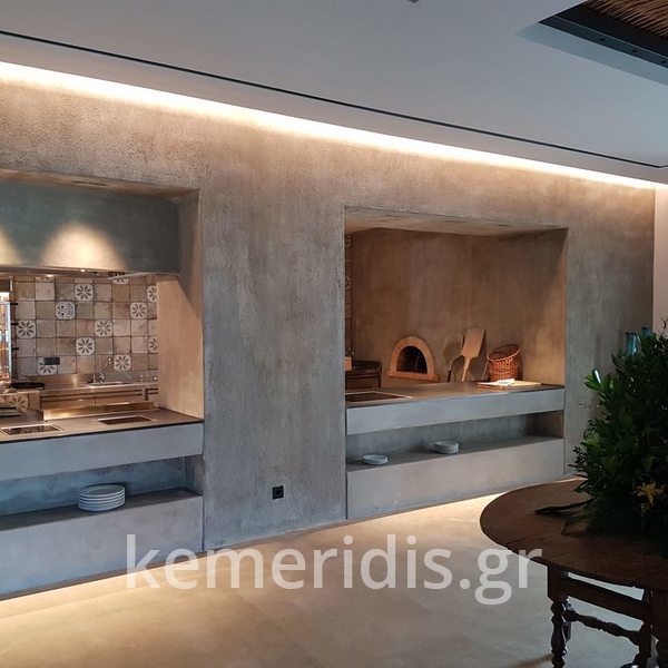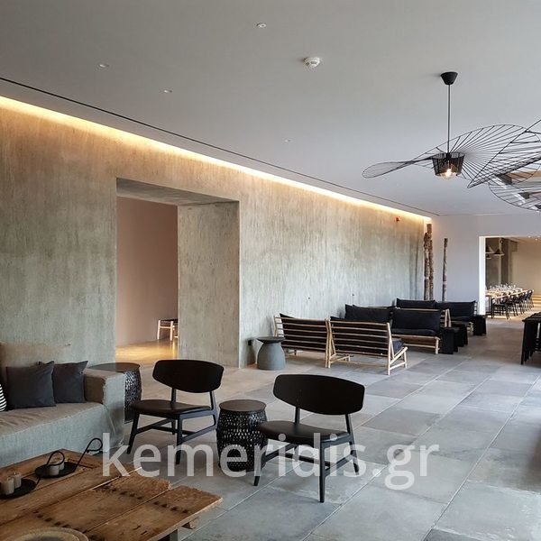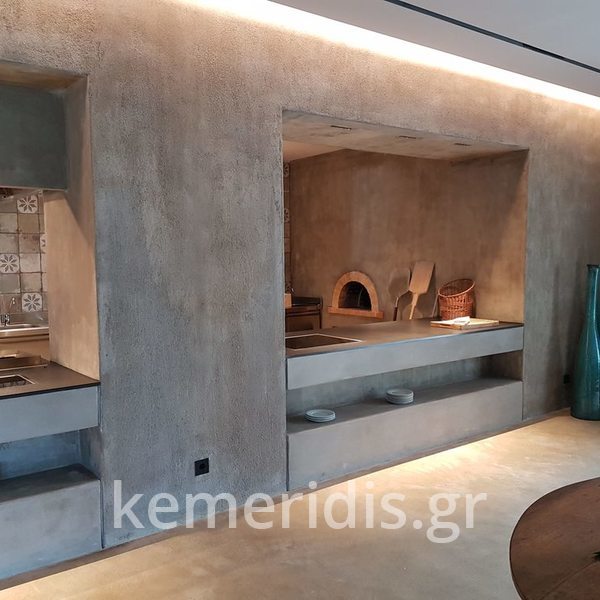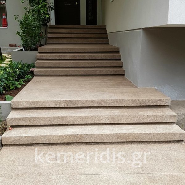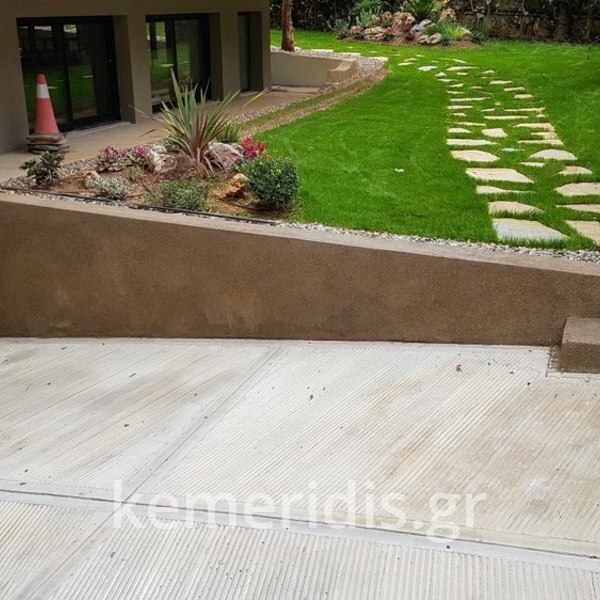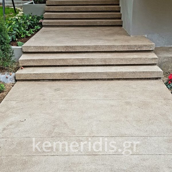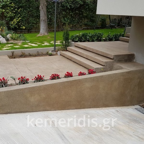 Ανακαίνηση εξωτερικού χώρου σε κατοικία στην Φιλοθέη με φυσικό αδρανές με επεξεργασία αδρής επιφανείας και παλαιωμένης υφής.