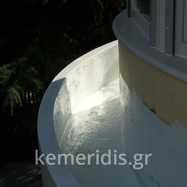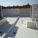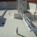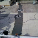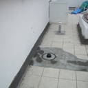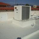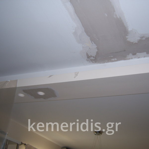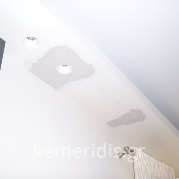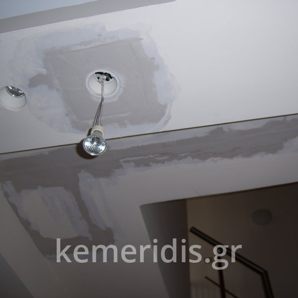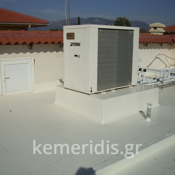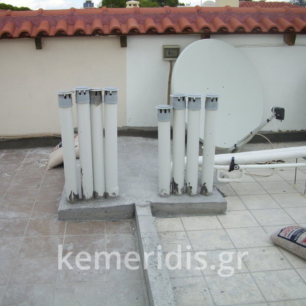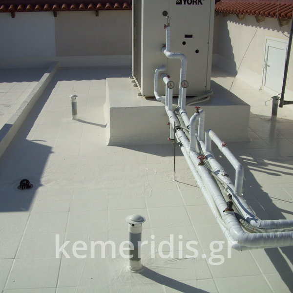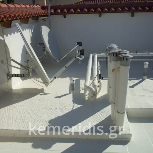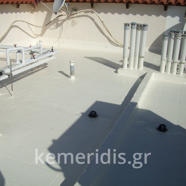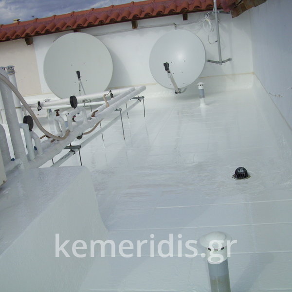 Σε νέα κατοικία λίγο πριν τοποθετηθούν τα πατώματα  παρουσιάσθηκαν προβλήματα από νερά που εσταζαν από την οροφή,τα κουτιά διακλάδωσεις των καλωδίων, και από διακόπτες & πρίζες. Μετά από αυτοψία διαπιστώσαμε ότι το νερό είχε περάσει κάτω από τα πλακάκια, το ασφαλτόπανο, & την θερμομόνωση λόγω κακοτεχνίας (κακή τοποθέτηση των απορροών ταράτσας, λάθος επιλογή στόκου των πλακιδίων, λάθος τοποθέτησης του ασφαλτόπανου). Το νερό είχε σωρευτεί στην πλάκα & από εκεί μέσω οπών των ηλεκτρολόγων και των σωλήνων των καλωδίων κατέληγε στο υπνοδωμάτιο από κάτω. Η λύση πού δώσαμε ήταν να τοποθετήσουμε νέες κατάλληλες υδρορροές με σωστό τρόπο, αποξήλωση των σοβατεπιών & κατασκευή καμπύλου λουκιού περιμετρικά, αφαίρεση όσο νερό ήταν δυνατόν & τοποθέτηση εξαεριστικών για να στεγνώσει το υπόλοιπο, εγκιβωτισμό των σωληνώσεων με στεγανό μπετόν, & επάλειψη τελική με ειδική πολυουρεθανική μεμβράνη.