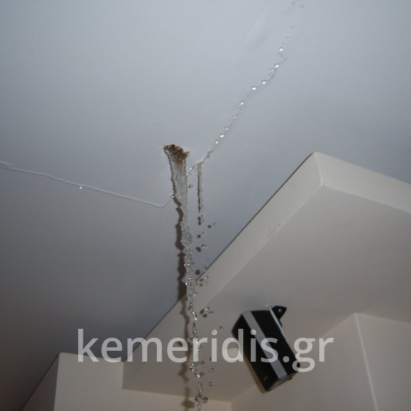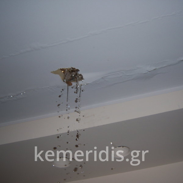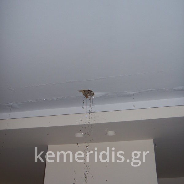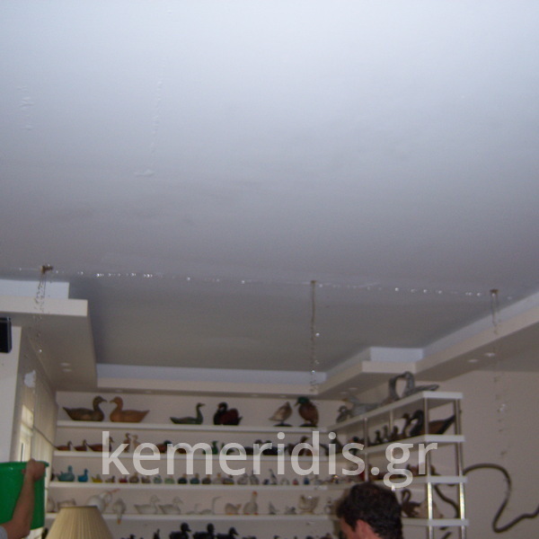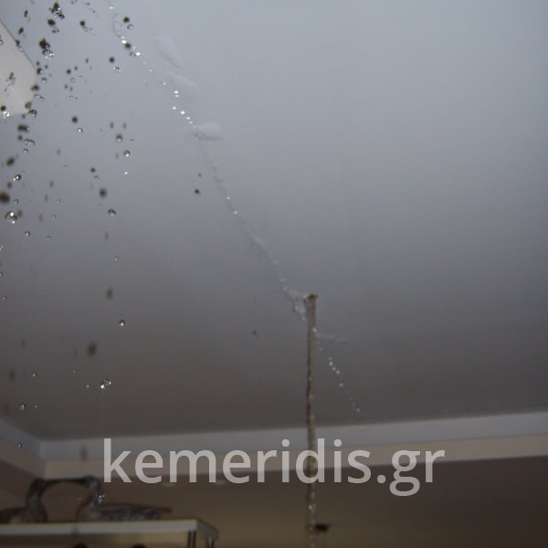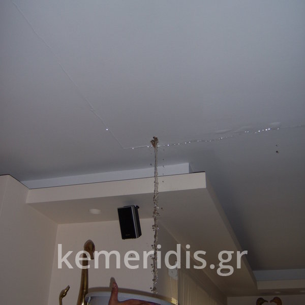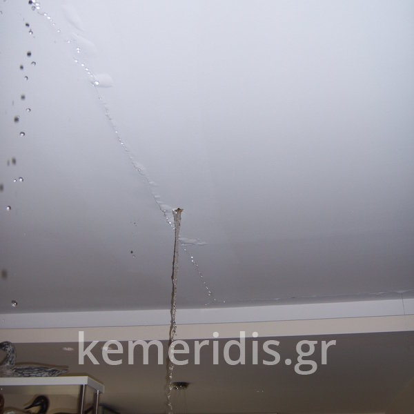 Στην Φιλοθέη μετά από νεροποντή με κάλεσαν επειγόντως γιατί έτρεχε νερό από την οροφή διαμερίσματος 4ου ορόφου. Αυτό που αντίκρισα ήταν απίστευτο γι' αυτό δείτε της φωτογραφίες & το βίντεο. Το απίστευτο ήταν ότι από πάνω δεν ήταν ταράτσα ή βεράντα, αλλά το καθηστικό του σπιτιού & οι κρεβατοκάμαρες. Δεν υπήρχε δε διαρροή από υδραυλικά. Η οροφή ήταν από γυψοσανίδα & ήταν γεμάτη νερό. Η αιτία? στη βεράντα του καθιστικού από πάνω βούλωσαν οι απορροές με φύλα από τις γλάστρες, πλημμύρισε η βεράντα, το νερό μπήκε από την ποδιά του συρόμενου αλουμινίου & γέμισε την ψευδοροφή με νερό.