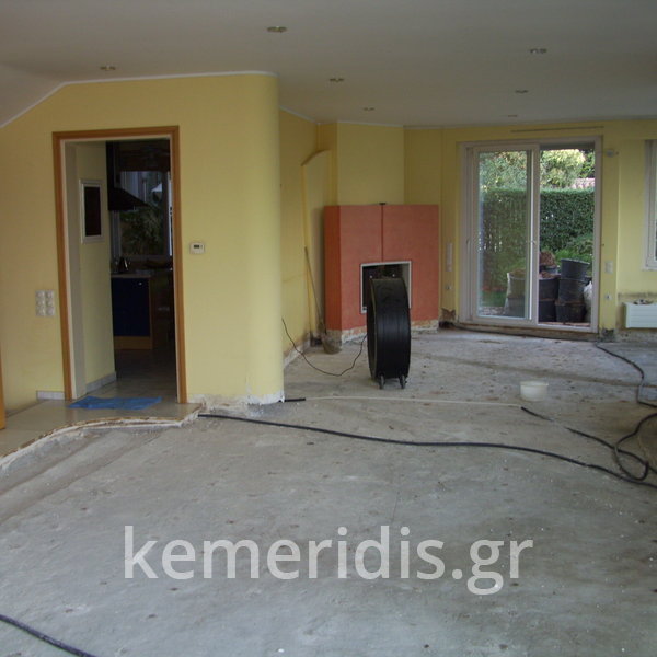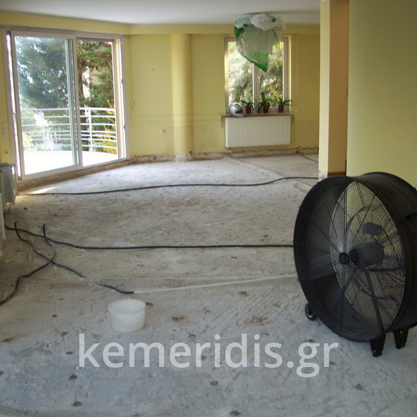 Σε κατοικία από της ζαρντινιέρες που ήταν εξωτερικά από διαρροή στον τοίχο  πλημμύρησε με νερό κάτω από το ξύλινο πάτωμα, με αποτέλεσμα την καταστροφή του πατώματος. Αφού ξηλώθηκε το πάτωμα, χρειάσθηκε να στεγνώσει με θερμαντικά μηχανήματα & ανεμιστήρα υπήρχε δε βιασύνη γιατί η ζημιά είχε γίνει πριν τα Χριστούγεννα. Άδειασαν οι ζαρντινιέρες από τα φυτά & το χώμα, καθαρίσθηκαν και στεγανοποιήθηκαν πλήρως και οριστικά.