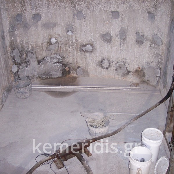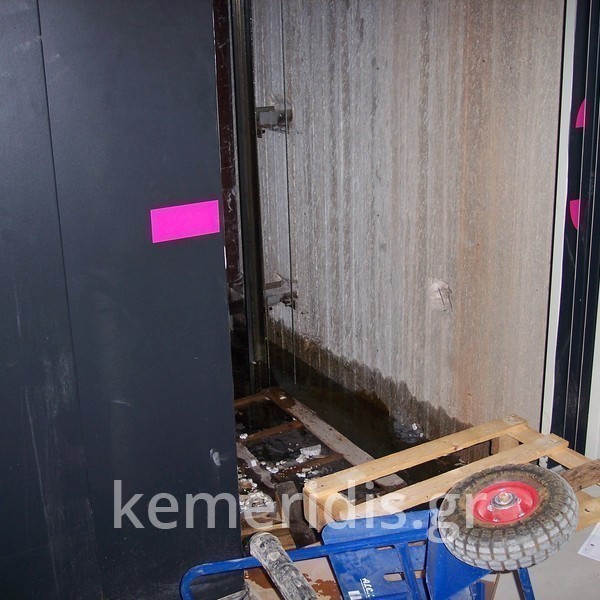 Σε κατάστημα στην Κηφισιά, στον ανελκυστήρα οχημάτων με κάλεσαν λόγω παφλασμού που ακουγόταν όταν ο ανελκυστήρας έφτανε στο δεύτερο υπόγειο, ανοίγοντας την πόρτα είδαμε το νερό να έχει γεμίσει το φρεάτιο του ανελκυστήρα έως το χείλος. Αμέσως αντλήσαμε τα νερά & διαπιστώσαμε ότι το νερό εισέρεε από το δάπεδο & από τα τοιχώματα λόγω ανύψωσης του υδροφόρου ορίζοντα, το νερό έρρεε σαν από πυγή. Έγινε εξυγίανση των τοιχίων & στεγανοποίηση, στο δε δάπεδο έγινε εξυγίανση, διάστρωση με στεγανό μπετόν, & τελική στεγανοποίηση.