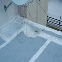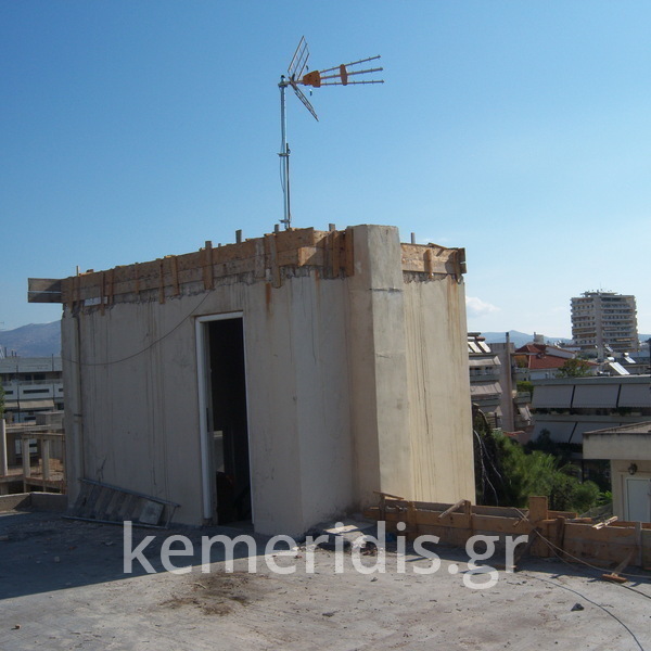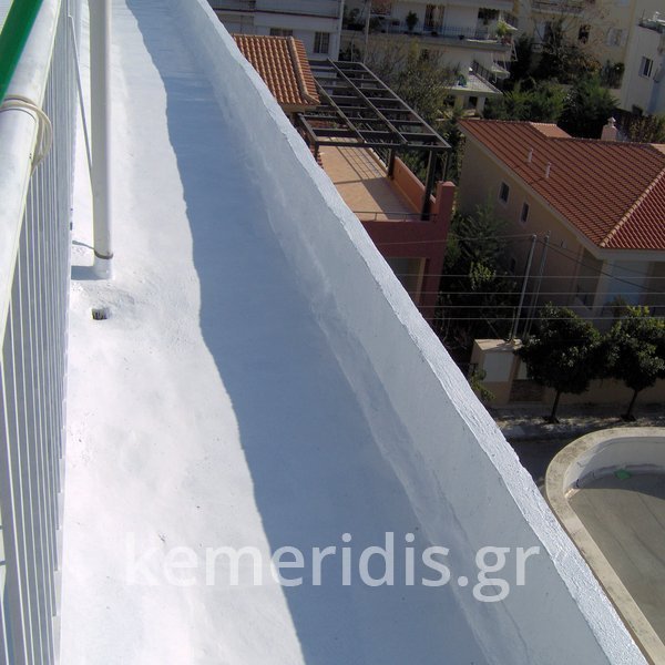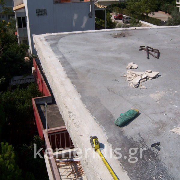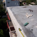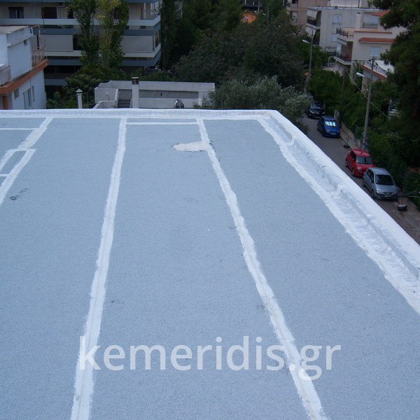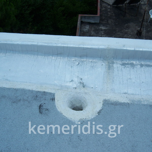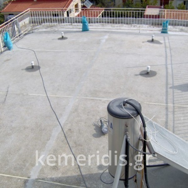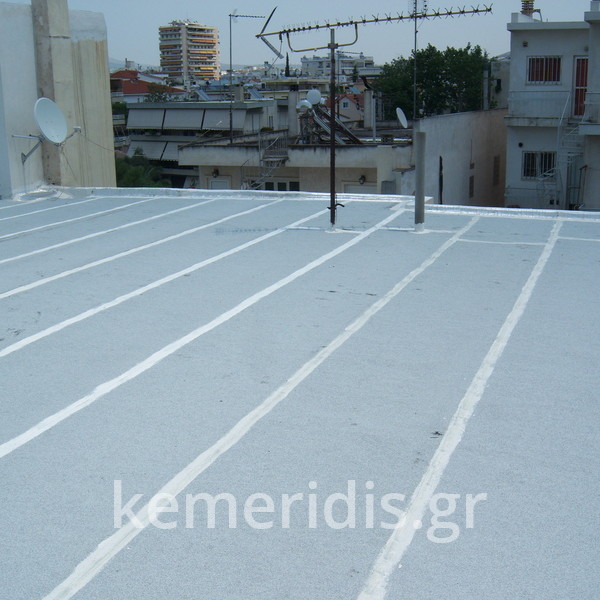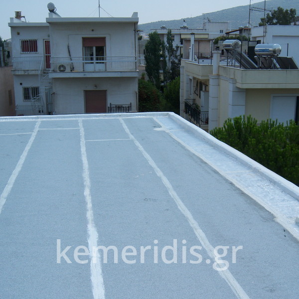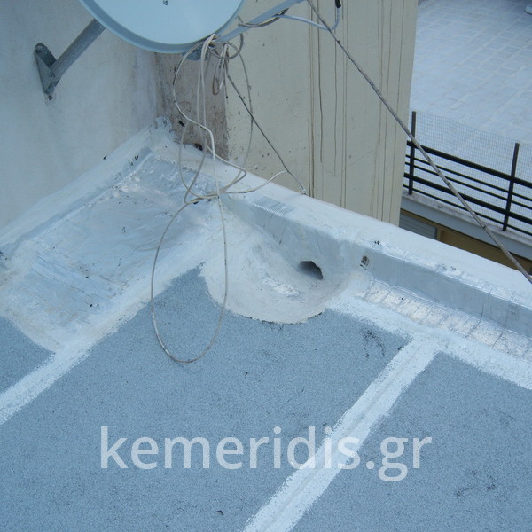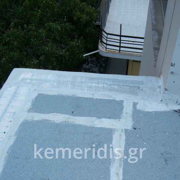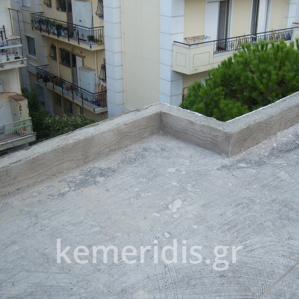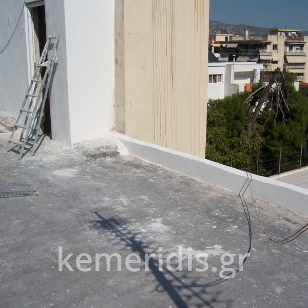 Eπισκευή στεγανοποίησης ταράτσας λόγω υγρασίας στα διαμερίσματα, έγινε καθαρισμός με μηχανικά μέσα του δαπέδου & τοποθέτηση εξαερισμών λόγω εγκλωβισμένης υγρασίας κάτω από την θερμομόνωση, επισκευές σε τοιχοποιίες και στηθαία και αλλαγή των κάγκελων, τέλος επάλειψη με πολυουρεθανική μεμβράνη στο δάπεδο & τον τοίχο του κλιμακοστασίου.