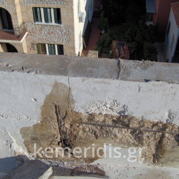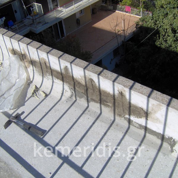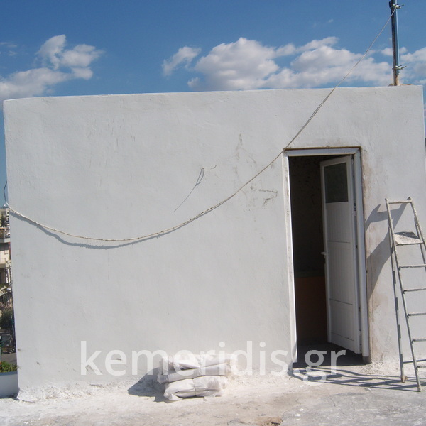 Επισκευή των σοβάδων στο κλιμακοστάσιο, ανακατασκευή των περιμετρικών στηθαίων, και τοποθέτηση ασφαλτόπανων σε δώμα.
