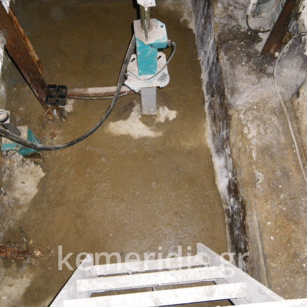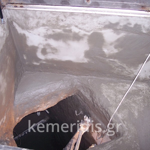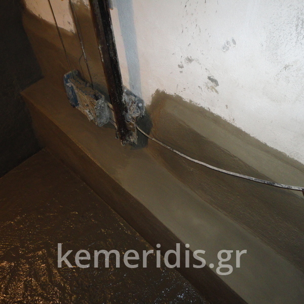 Στον Πειραιά απέναντι από το λιμάνι, σε φρεάτιο ανελκυστήρα στο τρίτο υπόγειο έβγαιναν συνεχώς νερά, παρόλο που το κτίριο είχε στεγανολεκάνη από την κατασκευή του. Στο πρόβλημα αυτό προσπάθησαν να δώσουν λύση τρείς εταιρίες με διαφορετικά υλικά (υγρή διογκούμενη πολυουρεθάνη, τσιμεντενέσεις, υδραυλικό τσιμέντο, οσμωτικά κονιάματα, κ.λ.π) χωρίς ωστόσο να καταφέρουν να δώσουν λύση στο υπάρχον πρόβλημα.