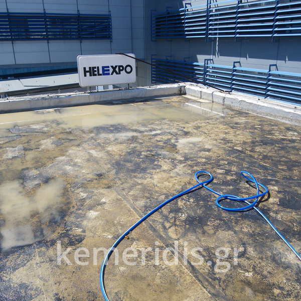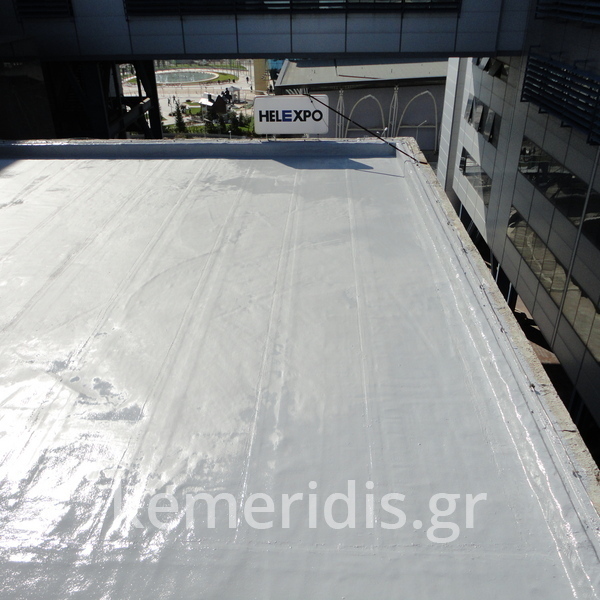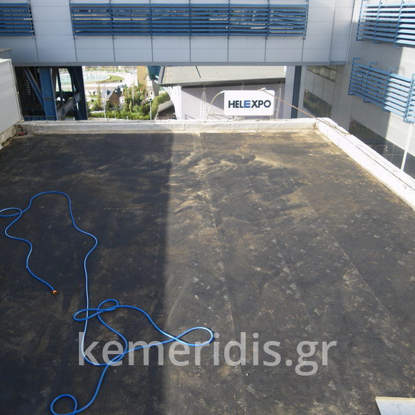 Στο εκθεσιακό κέντρο HELEXPO παρουσιάστηκαν προβλήματα στην στεγανοποίηση (έσταζε στον εσωτερικό χώρο του κέντρου) μετά από έλεγχο διαπιστώθηκε το πρόβλημα (αστοχία των υλικών & της εφαρμογής) και δώσαμε λύση με επισκευή των κακοτεχνιών εφαρμογή νέου ασφαλτόπανου και επάλειψη στο ασφαλτόπανο πολυουρεθανικής μεμβράνης για επιπλέων προστασία