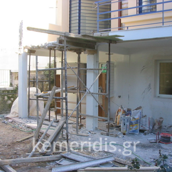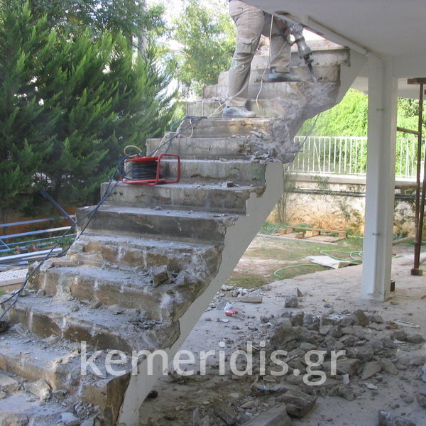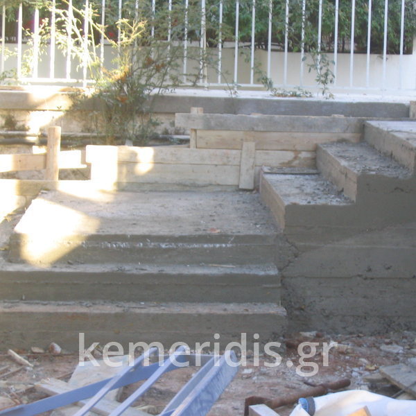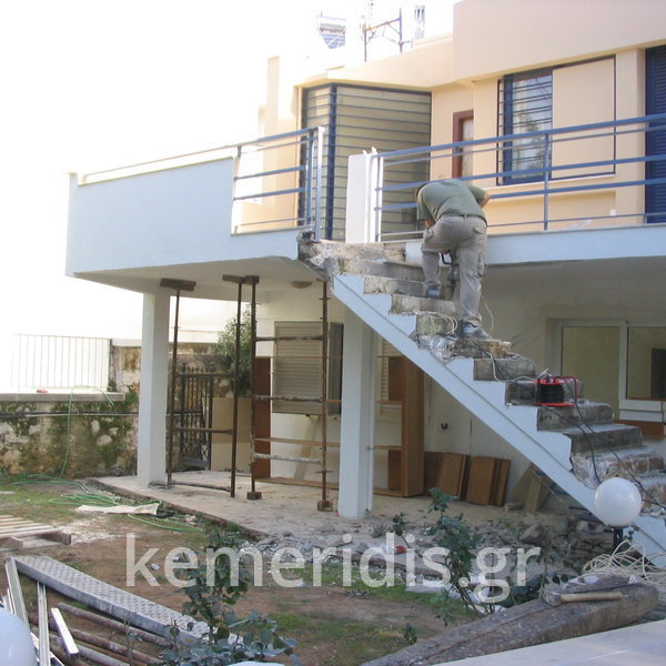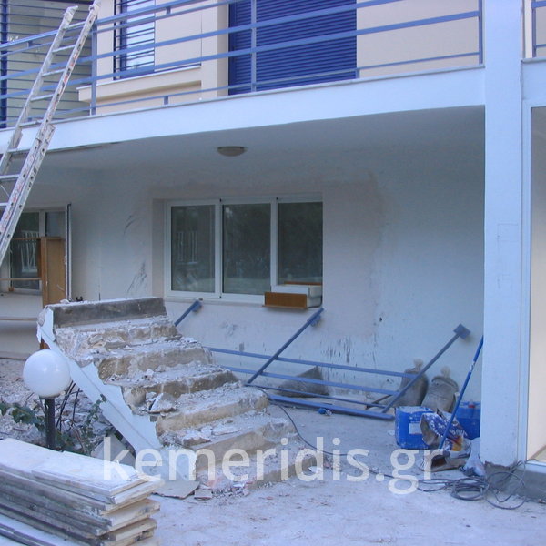 Σε κατοικία στο Ψυχικό καθαίρεση παλαιάς εξωτερικής σκάλας, & κατασκευή νέας με αλλαγή φοράς, κατασκευή διαδρόμου & νέας εισόδου.
