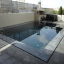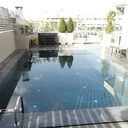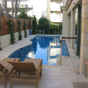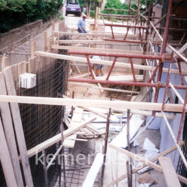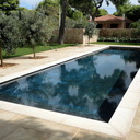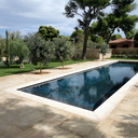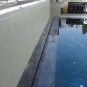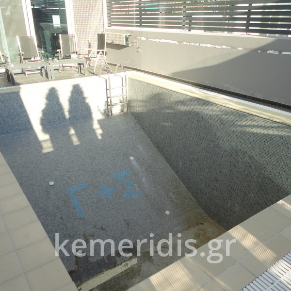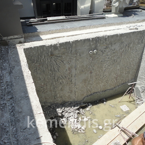 Επισκευή πισίνας με ολική αφαίρεση ψηφίδων και των σοβάδων, αλλαγή της υπερχείλισης με γραμμική υπερχείλιση δικού μας σχεδιασμού, στεγανοποίηση όλης της πισίνας, τοποθέτηση στεγανού σοβά, και τέλος επίστρωση πατητής τσιμεντοκονίας.