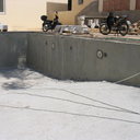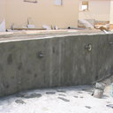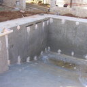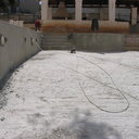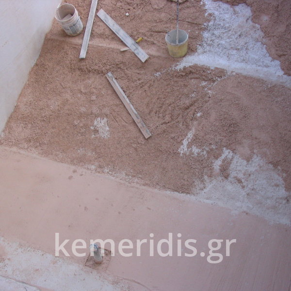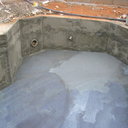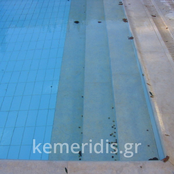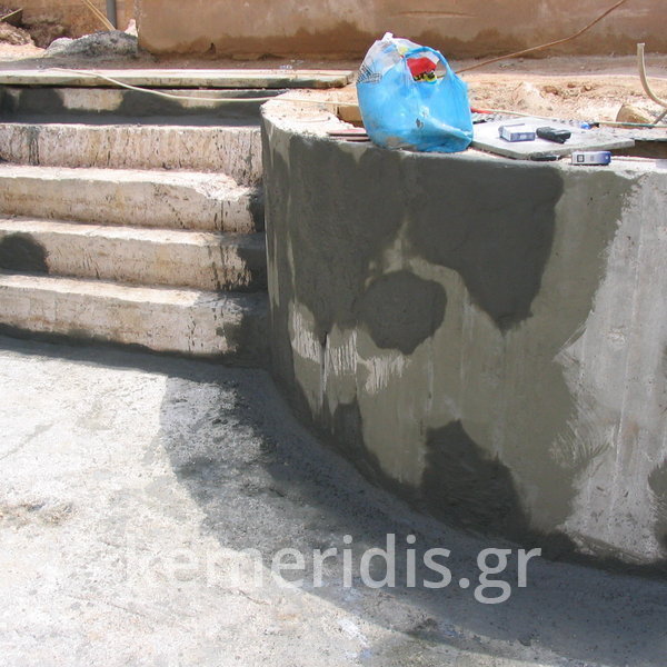 Σε πισίνα με υπερχείλιση που είχε κατασκευαστεί το μπετόν, εξυγιάναμε το μπετόν & το στεγανοποιήσαμε, κατόπιν τοποθετήσαμε την τσιμεντοκονία & τα πλακάκια.