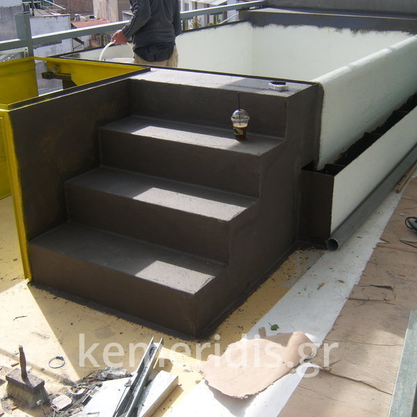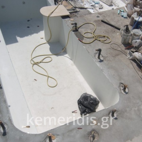 Το έργο αφορά την κατασκευή πισίνας σε βεράντα! Μετά από μελέτη από στατικό μηχανικό & της απαραίτητες εργασίες στήριξης, αποφασίσθηκε ελαφριά & λεπτή σε πάχος κατασκευή λόγω του μικρού χώρου που διαθέταμε.