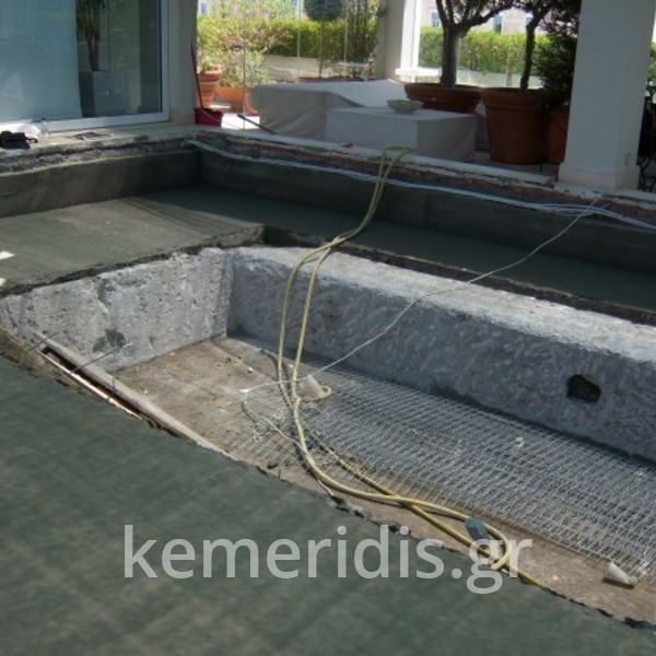 Ανακατασκευή πισίνας στο Σύνταγμα σε ταράτσα, λόγω πολλών προβλημάτων στη στεγανοποίηση ( έσταζε στο διαμέρισμα από κάτω).