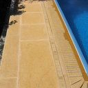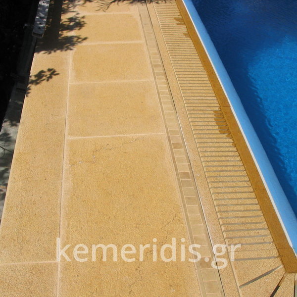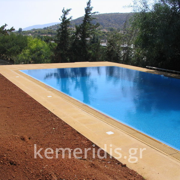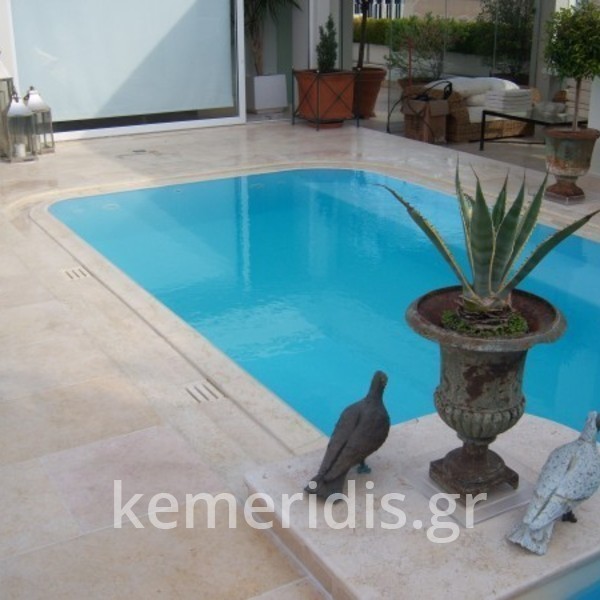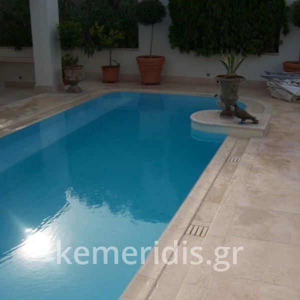 Έγινε η καθαίρεση της παλαιάς & εκσκαφή μεγαλύτερου σκάμματος & κατασκευάσαμε την πισίνα με υπερχείλιση από μάρμαρο «California honey» με την υπόλοιπη πισίνα βαμμένη με εποξειδικό χρώμα σε ανοικτό γαλάζιο.