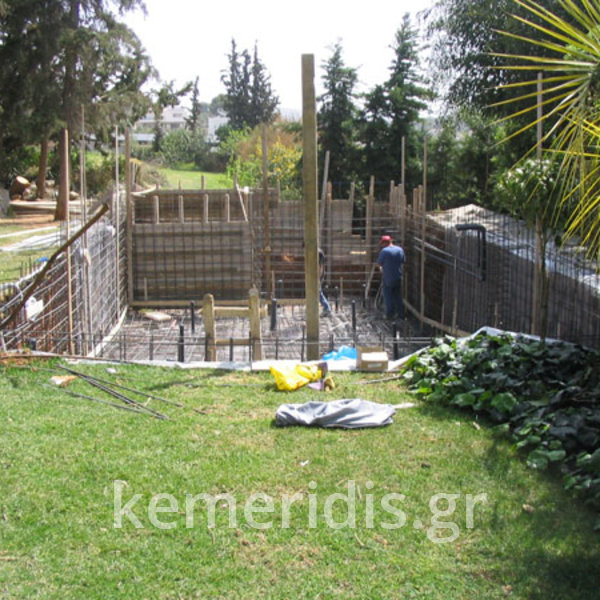 Σε χώρο που υπήρχε παλαιά πισίνα η οποία λόγω σοβαρών προβλημάτων δεν λειτούργησε ποτέ σωστά απεφασίσθη η πλήρη αποξήλωση της & κατασκευή νέας μεγαλύτερης και με υπερχείλιση.