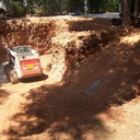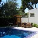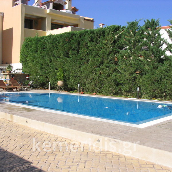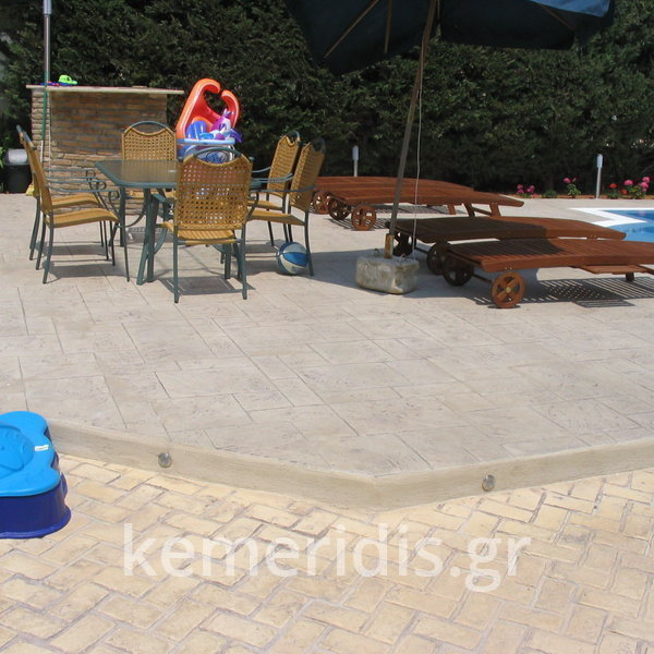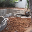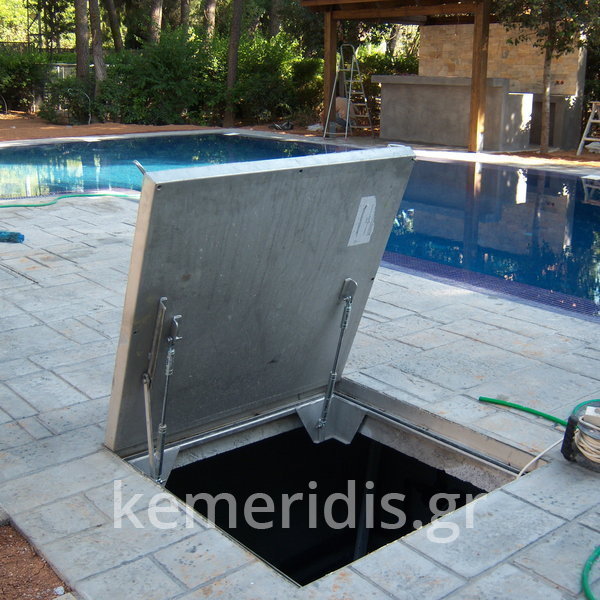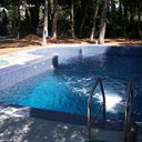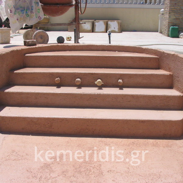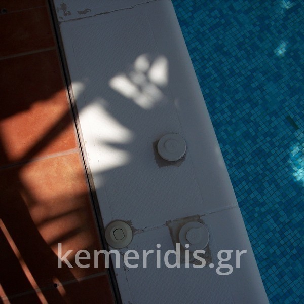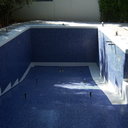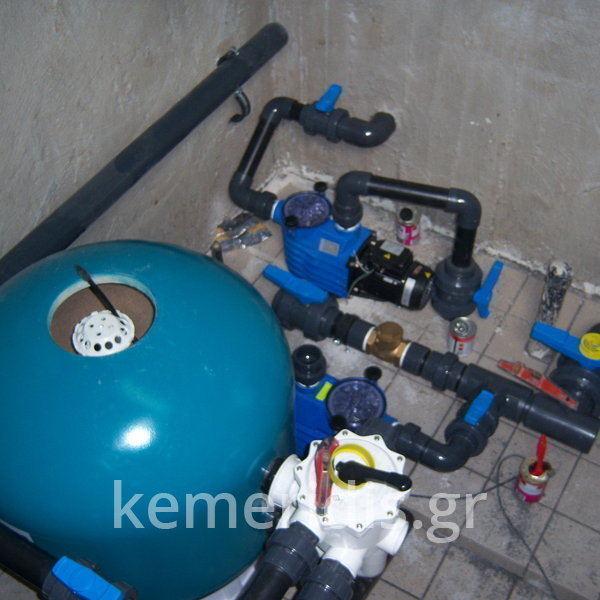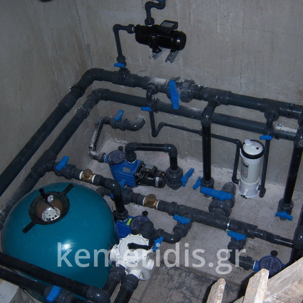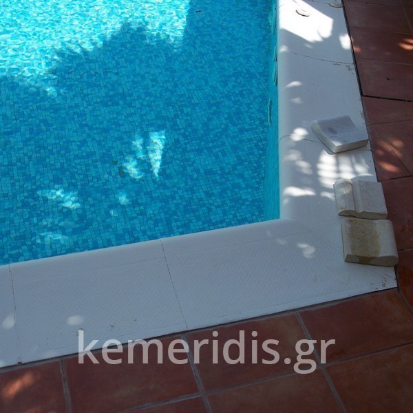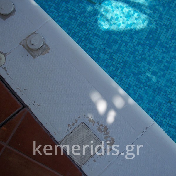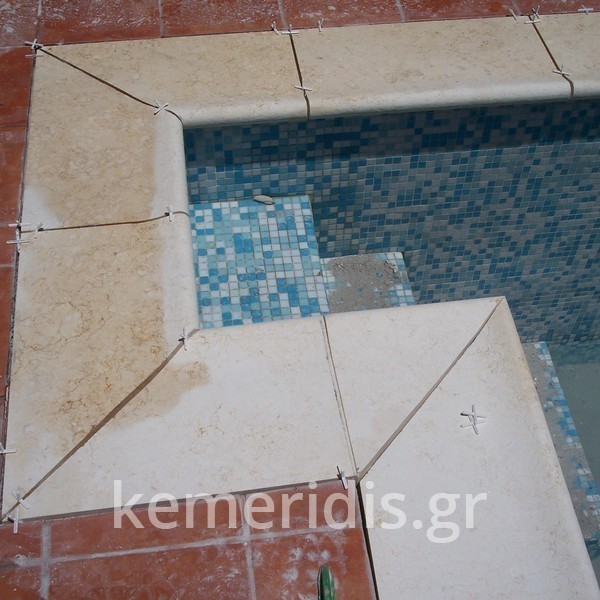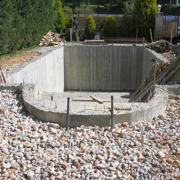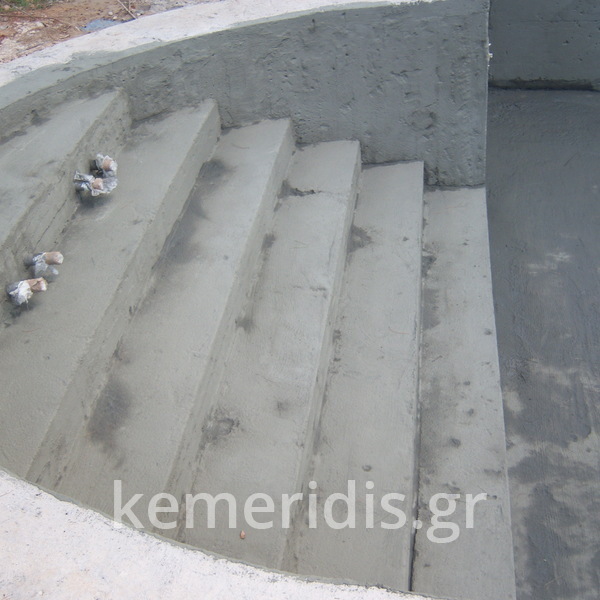 Κατασκευή πισίνας με υπερχείλιση, το έργο αφορούσε όλες τις εργασίες κατασκευής πισίνας: εκσκαφή, κατασκευή μπετόν, στεγανοποίηση, μηχανολογικός εξοπλισμός, τοποθέτηση ψηφίδας, διαμόρφωση περιβάλλοντος χώρου. Η υπερχείλιση έγινε over flow ( τοπικών απορροών ) επειδή υπήρχαν πολλά δένδρα για ευκολία στο καθάρισμα των φύλλων, η σκάλα τοποθετήθηκε στο πλάι σε κυκλικό σχήμα με στόμια υδρομασάζ, εσωτερικά τοποθετήθηκε ψηφίδα, & στον περιβάλλοντα χώρο σταμπωτό μπετό, & γκαζόν.