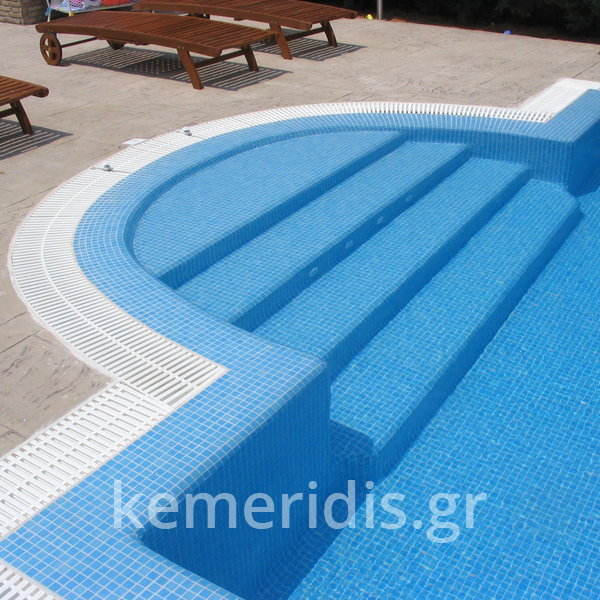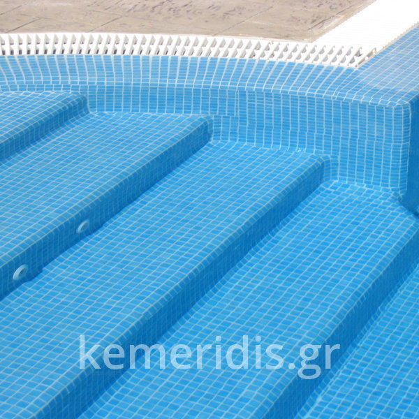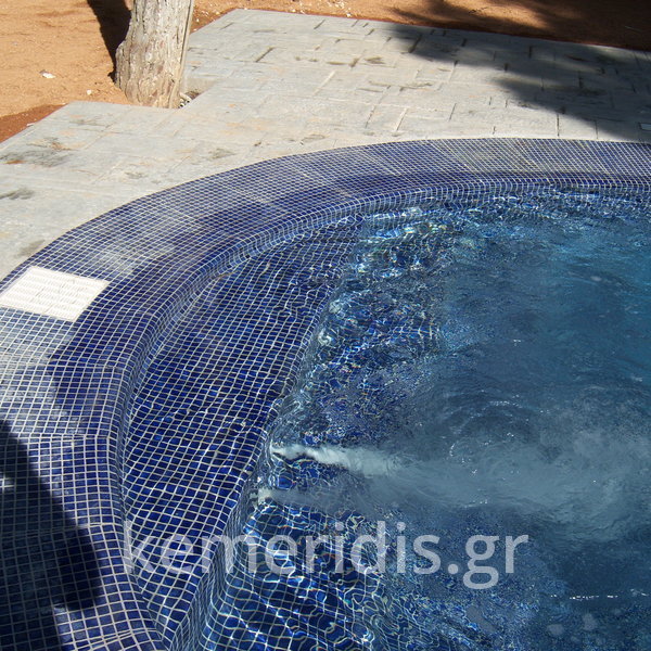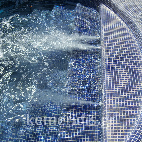 Κατασκευή πισίνας με υπερχείλιση. Επένδυση με ψηφίδες και υδρομασάζ στην σκάλα.