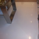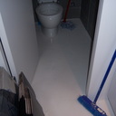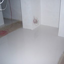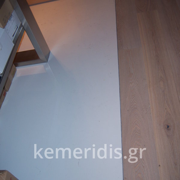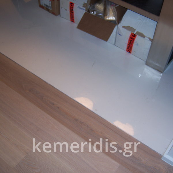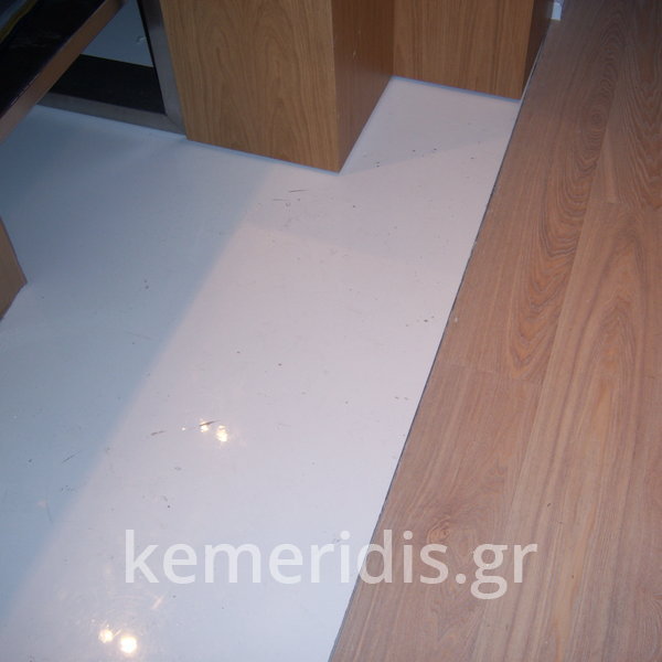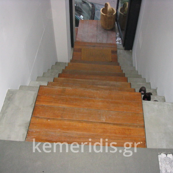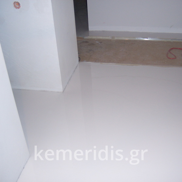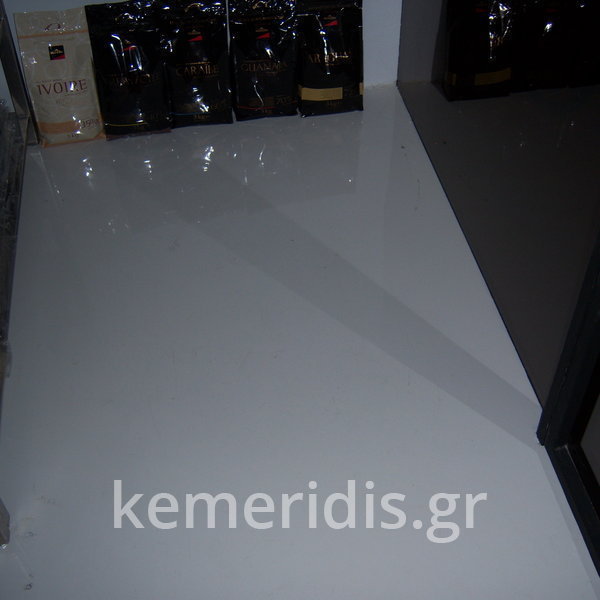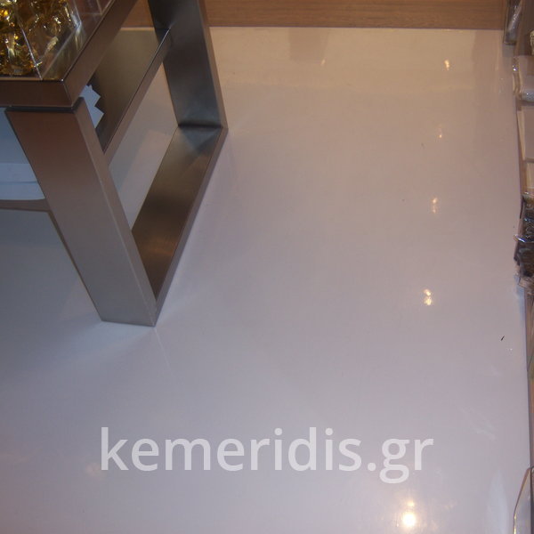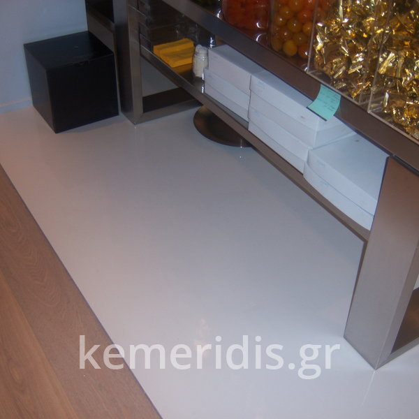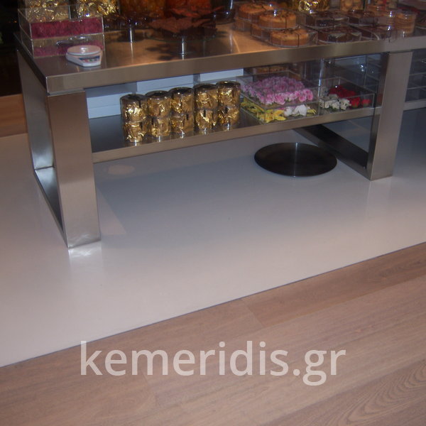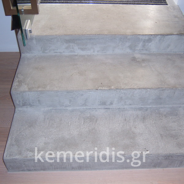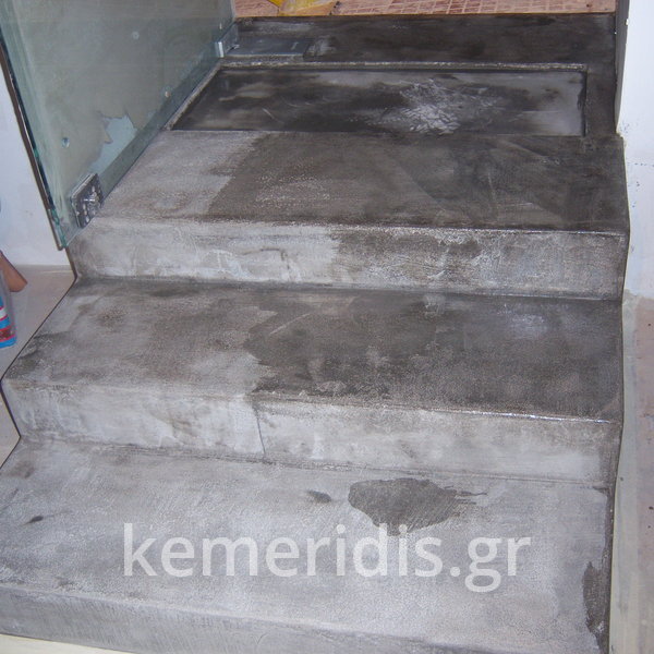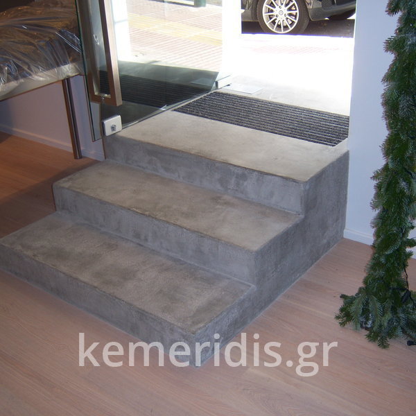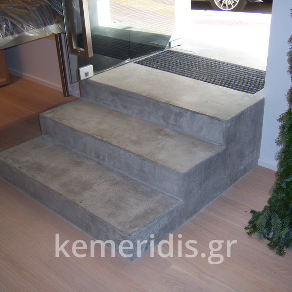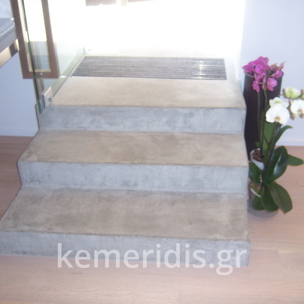 Σε κατάστημα στο Κολωνάκι κατασκευάσαμε σκάλα από beton cire & σε μέρος του δαπέδου έγινε διάστρωση με αυτοεπιπεδούμενο εποξειδικό σε λευκό χρώμα.