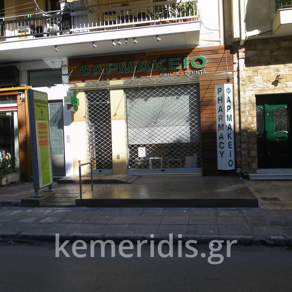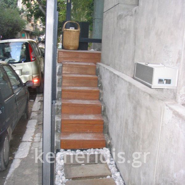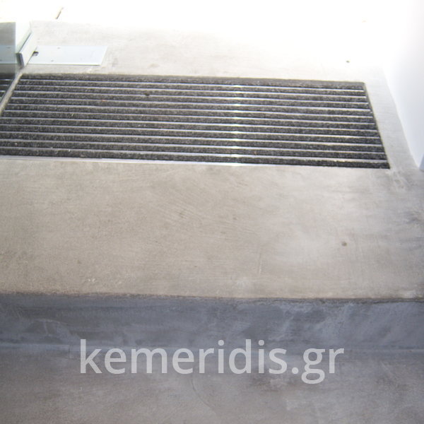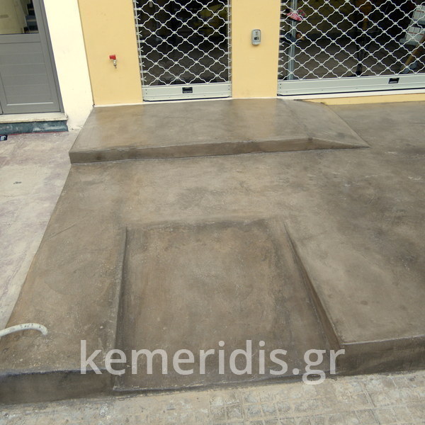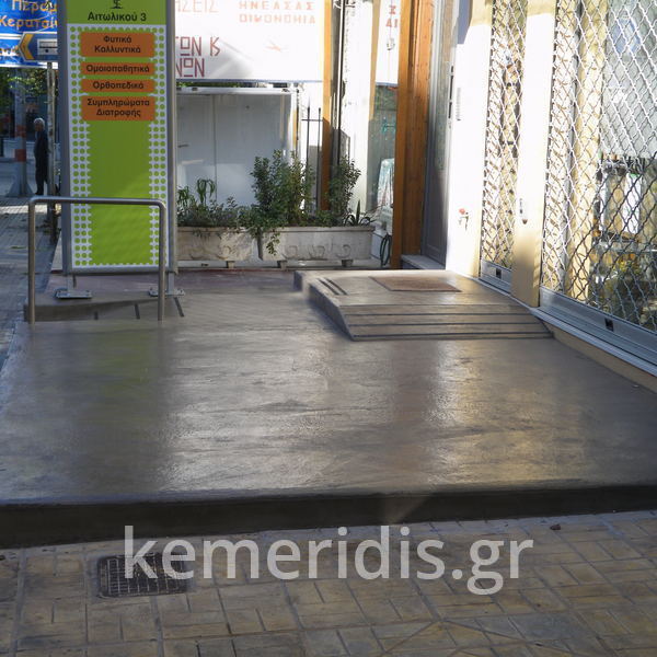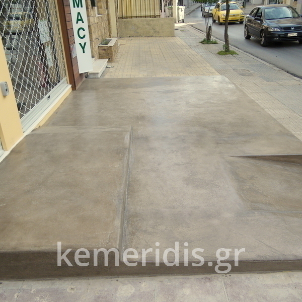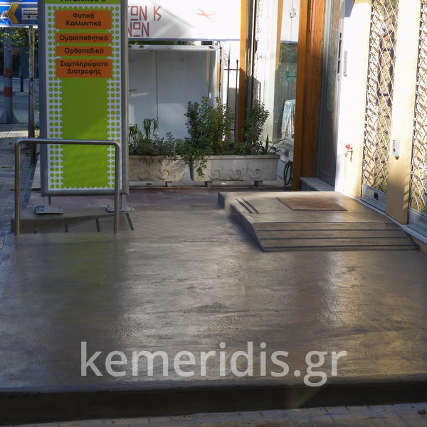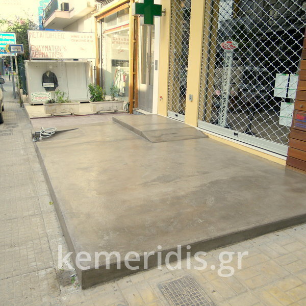 Σε φαρμακείο κατασκευάσαμε πλατφόρμα πεζοδρομίου με ράμπα ΑΜΕΑ από beton cire ( μπετόν κηρωμένο) .
