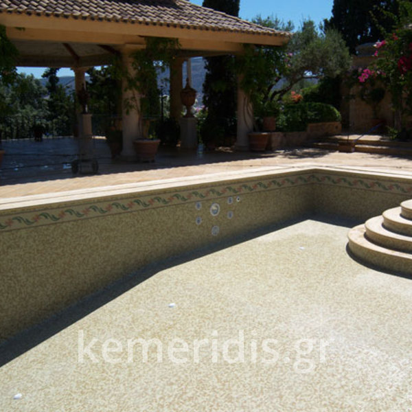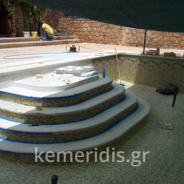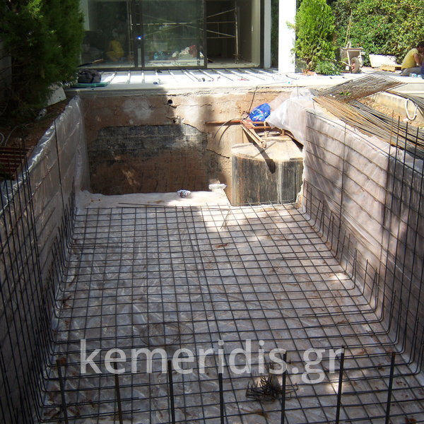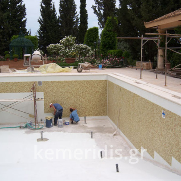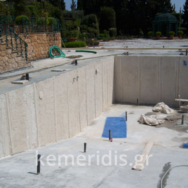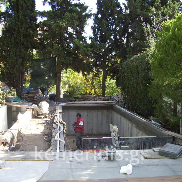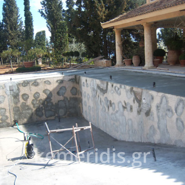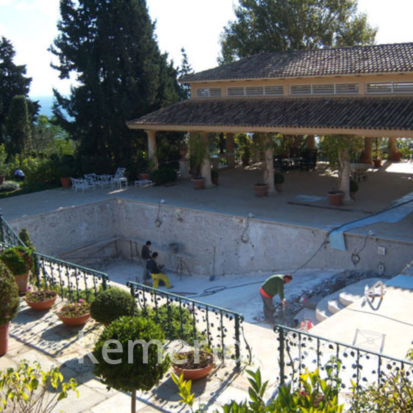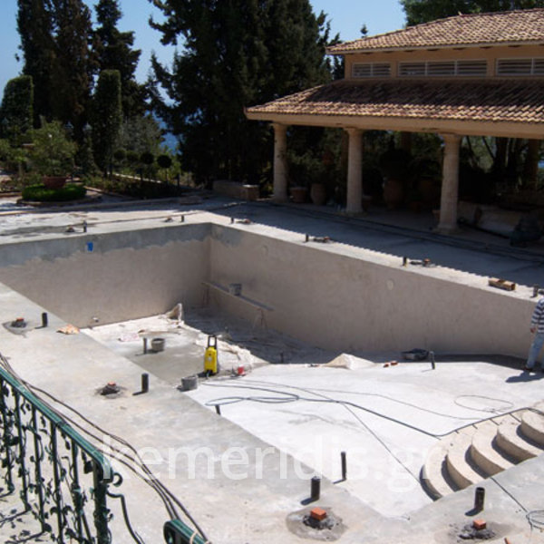 Ανακατασκευή πισίνας σε κτήμα αρχικής κατασκευής 1973-74 η οποία παρουσίασε πρόβλημα διαρροών από την αρχική κατασκευή.