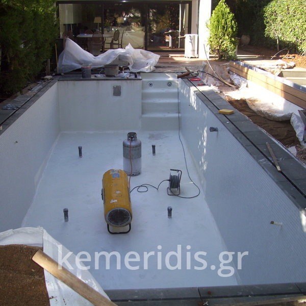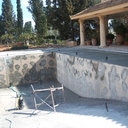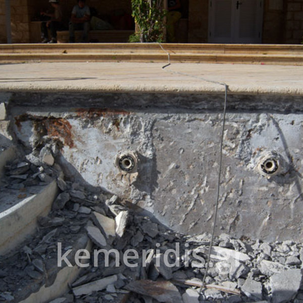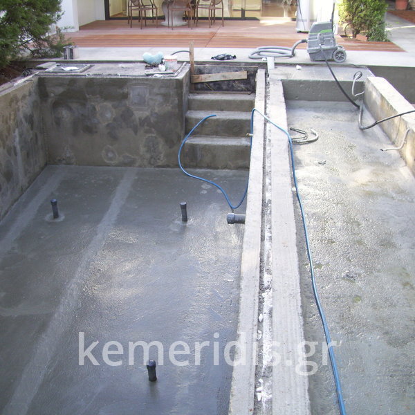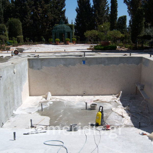 Μετά από αυτοψία& έλεγχο των τοιχίων απεφασίσθη να επισκευάσουμε την πισίνα & να την αναβαθμίσουμε χωρίς να καθαιρεθεί πλήρως.