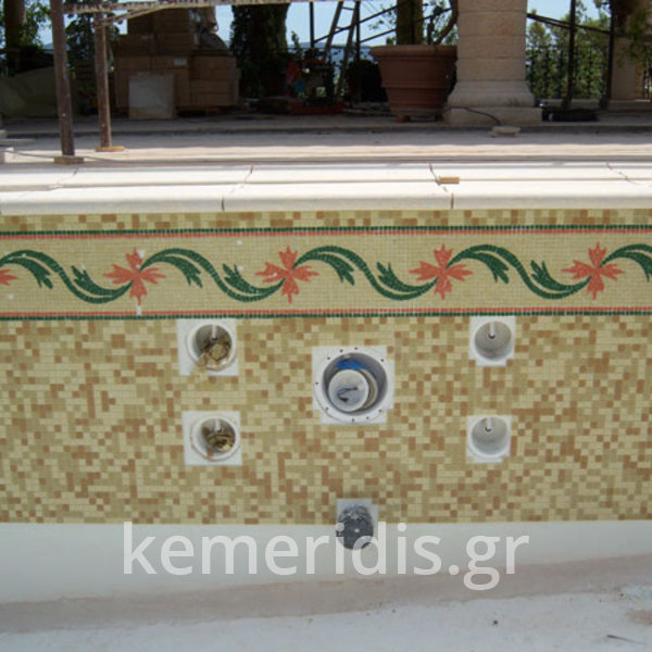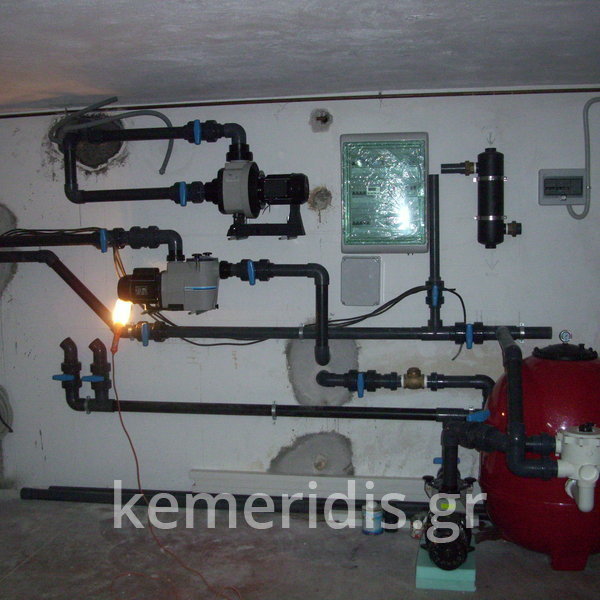 Η πισίνα ήταν με σκίμερ & έπρεπε να γίνει με υπερχείλιση πολλαπλών απορροών (οπότε έπρεπε τα φώτα να ανεβούν ψηλότερα & να κατασκευαστή δεξαμενή υπερχείλισης) να τοποθετηθεί συσκευή αντίθετου κολύμβησης υδρομασάζ & να επι